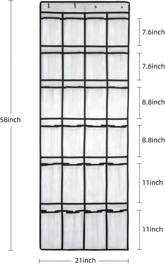 over the Door Shoe Organizer, Hanging Shoe Organizer with 24 Mesh Large Pockets Door Shoe Rack Organizer for Men Women Kids Hanging Shoe Storage Bag.(White)
