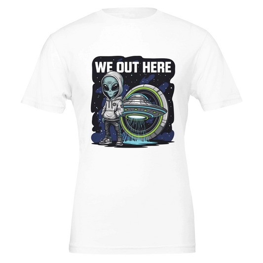 We out here - Alien/UFO , Premium Unisex Crewneck T-shirt